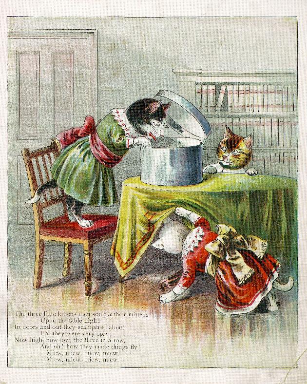 Так писала Агата Кристи в своей «Автобиографии», вспоминая детские годы. Как знать, возможно, среди прочитанных ею в то время книг была и эта – «Три маленьких котенка». Детские книги XIX века прекрасно иллюстрировались, и мы сегодня, разглядывая их, получаем представление о повседневной жизни в Викторианской Англии.